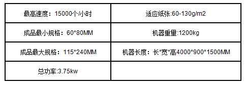 2、配有吸氣滾筒的柵欄定位折疊機構可高速、準確地完成兩次橫折,信封(紙袋)的寬度可不停機調整。